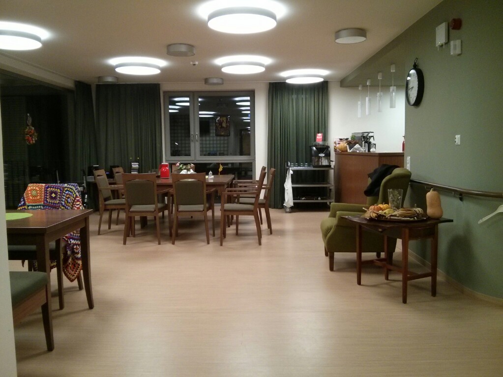 Frau K. ist drahtig und klein, richtig zierlich. Sie ist ebenfalls als erste Person im April 2014 in das „Kompetenzzentrum“ eingezogen. Anders als alle anderen Bewohner hat Sie allerdings weder Alzheimer, noch Demenz. Ihr Mann hatte Alzheimer, weshalb beide in dieser Einrichtung unterkommen wollten, aber dieser verstarb leider eine Woche vor dem Umzug.